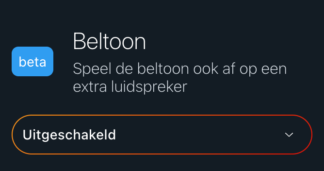 Vanaf hier kun je instellen of de beltoon ook via een extra luidspreker moet worden afgespeeld.
