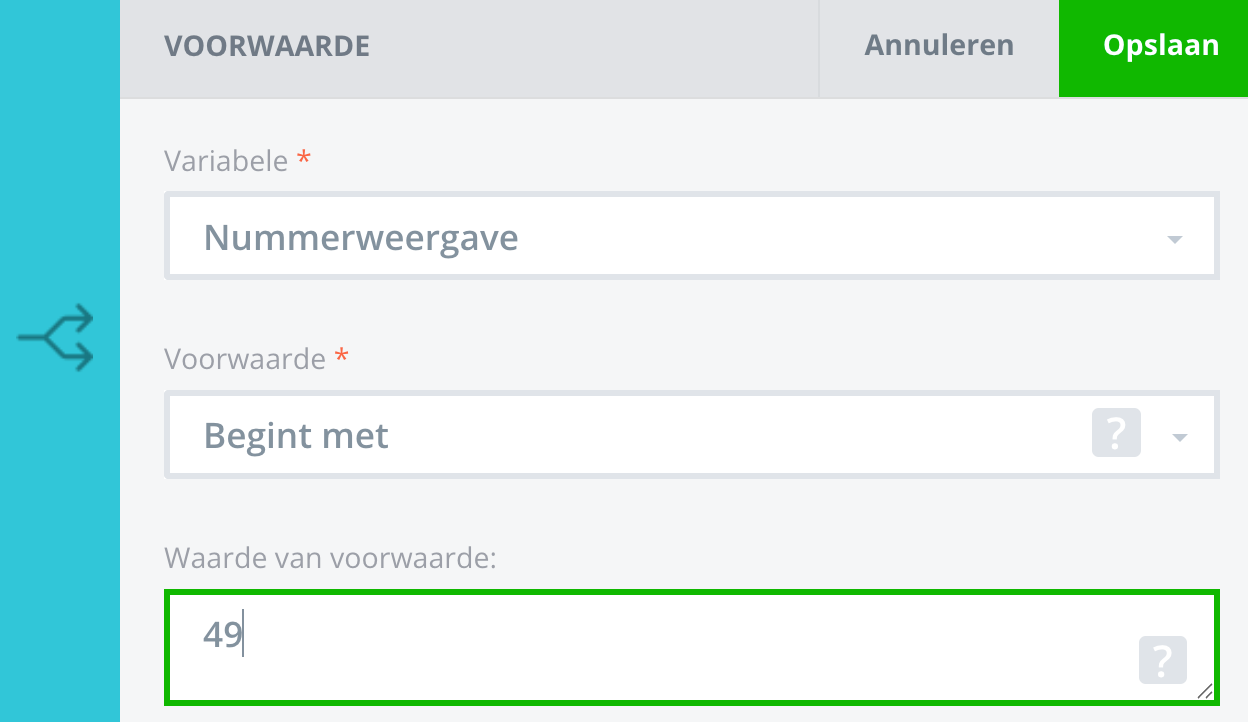 Bijvoorbeeld: als je geen oproepen wilt ontvangen van bepaalde bellers, maak je eenvoudig een voorwaarde aan die overeenkomt met die nummers en koppel je deze aan een Hang Op-actie.